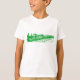 100% cotton so perfect for summer, It is a nicely designed t-shirt, the fabric is soft and the seams finished well, the body of the t shirt has no side seams. I bought a medium size for my two grandsons, aged 9 and 8 it will be slightly big on them but I would rather that than too small