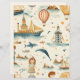 This Vintage Travel Destination Beach Sea Paper, available online, perfectly captures the timeless allure of seaside travel. The design features an array of classic motifs including sailboats gently bobbing on the waves, hot air balloons drifting serenely in the sky, playful dolphins leaping from the sea, and birds soaring overhead. Each element is rendered with a vintage aesthetic, using muted colours and distressed textures to evoke the feeling of an old-fashioned postcard or a cherished memory.