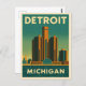 Vintage Travel Detroit Michigan Cityscape Retro Postcard