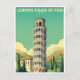 vintage, retro, travel, modern, watercolor, classic, Leaning, Tower, Pisa, italy,