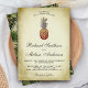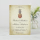 Amaze your guests with this elegant wedding invitation featuring an exotic pineapple against a rustic parchment background. Simply add your event details on this easy-to-use template to make it a one-of-a-kind invitation. Flip the card over to reveal a beautiful vintage tropical leaves pattern on the back of the card.