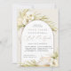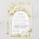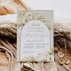 Tropical chic bat mitzvah invitations in an alluring neutral colour palette feature a central arched element bearing your ceremony and celebration or party details, accented with pale green watercolor palm fronds, beachy island foliage, white orchids, boho dried botanicals and pampas grass.