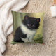 Pillow featuring a darling tuxedo kitten! This black and white kitten cutely poses on green and red blankets. A wonderful gift for cat lovers and Victorian art enthusiasts!