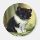 Magnet featuring a darling tuxedo kitten! This black and white kitten cutely poses on green and red blankets. A wonderful gift for cat lovers and Victorian art enthusiasts!