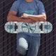 This deck features a throwback design with a vintage style TV test pattern featuring markings similar to 1950's and 1960's television test pattern.