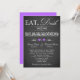 This vintage style typographical black and white chalkboard LOOK wedding invitation has a variety of fonts with scrolls and two lilac purple coloured hearts on it. It is shown here on basic paper. It is easily customised with your own information. There is some customisable text that you can edit the way you require. ALSO, please note that everything will print as it appears on your monitor. Zazzle will not edit anything for typos or mis-alignment etc., and I will not see it once you have ordered it. If you need help with your wording, please email me BEFORE you order. If there are any other items you need to make your event extra special, please email your request to niteowlstudio@gmail.com.