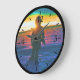 Vintage USA alaska eskimo hunter sunset Large Clock