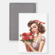 Add a touch of timeless charm to your space with this vintage-inspired pin-up girl magnet. Featuring a classic 1950s-style beauty holding a bouquet of red and pink roses, this retro illustration radiates romance, femininity, and old-school glamour. Perfect for Valentine’s Day décor, romantic gifts, or anyone who loves nostalgic pin-up art.