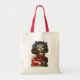 Adorable, vintage picture of a sweet puppy wearing bows and hearts, with a big heart that says, "Hello", is featured on this Valentine's Day tote bag. Natural coloured tote bag with red handles, makes a cute gift for Valentine's Day or use as a goody bag! Great tote bag to use for shopping, travel, school and more.