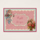 A vintage inspired Valentine's Day greeting in dusty rose pinks, and a pretty, light, sky blue. Vintage clip art of a sweet, chubby cupid, wrapped in a light blue robe and holding a basket of pink roses is in the top left corner. In the bottom right corner is another piece of vintage clip art of a woven basket with pink coloured roses. The centre has a decorative ephemera tab, with customisable text.