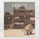Venice square. Cart with boxes in the middle of old Italian square with colorful buildings in Venice, Italy. Postal, delivery service in Italy. Boxes left alone