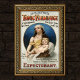 • This high-quality retouched illustration is a vivid reproduction of a classic pre-1929 advertising poster. This artwork features a beautiful woman holding a baby in a basket against a blue background, rendered in a classical, ornate illustration style.