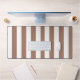 Vintage Vertical Stripes Mocha Mousse White Desk Mat