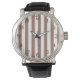 Vintage Vertical Stripes Mocha Mousse White Watch
