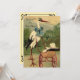 Vintage illustration Victorian children and babies image with a stork and a baby carriage. The stork is a classic symbol of bringing home a new baby. The stork is wearing a big blue bow and a hat, the baby is in a small pram or stroller with a cute hat with ruffles. Neutral tones makes this invitation the perfect choice for a baby girl or boy!