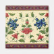 This design is a vintage image of a wallpaper border print. Pretty blue and red flowers on green vines against a beige background.
