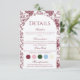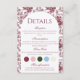 Complete your wedding suite with this timeless details enclosure card, designed in an elegant burgundy toile pattern. Perfect for providing guests with important information about your celebration, this refined card ensures they have everything they need—from reception location to accommodations, dress code, and wedding website.