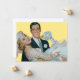 Vintage illustration love and romance wedding image featuring a handsome groom carrying his beautiful newlywed bride. Fun retro 50s kitsch design!