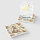 The coasters are gorgeous, a quality feel and heavy weight. They look like a precious archeological find. A rustic stone juxtaposed with a modern floral black and white print. I like the way the print goes slightly imperfect on the cut stone edges giving them a kind-of natural beauty.