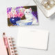 Badge featuring a beautiful white kitten wearing a purple ribbon! This fluffy kitty poses next to a blue bowl and a vase of pink, purple, and white flowers. A marvellous gift for cat lovers and Victorian art enthusiasts!