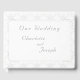 Design features a gorgeous background of the image of white lace on front cover, spine and back cover. Text is displayed in an elegant, silver-coloured Nuptial font. All text is customisable and designed to coordinate with the Vintage White Lace Catholic Wedding Suite.