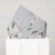 This tissue paper features a pattern of vintage white roses on a pale grey background.