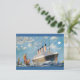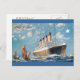 The front of this postcard has a beautiful vintage image of the R.M.S. Olympic, one of the famed White Star fleet. The Olympic was their lead ship, and was the largest ocean liner in the world until the short-lived Titanic of the same line. The Queen Mary also eventually eclipsed her, but she enjoyed a long career, from 1911 until 1935. The traditional white star is placed on the image in the upper right. It is bordered in darker cerulean blue. The customizable text on the back says "H.M.S. Olympic"