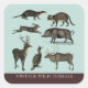 Sticker with vintage black and white illustrations of wild animals.. The large sticker size is good for making handmade cards or crafting.