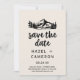 This vintage wilderness save the date card is perfect for a mountain wedding. The rocky mountains inspired design features a hand drawn mountain, lake and forest scene.