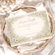 A romantic garden design featuring soft blush tulips, creamy white lilies, and delicate wild blossoms arranged in an elegant symmetrical floral frame. Airy sage greenery and subtle vintage detailing surround a warm parchment background, creating a refined, timeless aesthetic. The composition feels light, graceful, and classically feminine — perfect for an elevated celebration with a soft spring garden atmosphere.