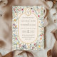 Vintage Wildflower Fern Beige Wedding Monogram Invitation