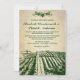 Vintage Winery Tuscan Vineyard Wedding Invitations - features a vineyard field landscape at the bottom. The top has a design of grapes, vines and leaves. The background is a vintage or printed old parchment paper.