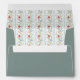 Elegant sage green envelopes with your return address for your wedding invitations, save the dates, engagement announcements, couples shower invites, thank you cards and other correspondence. The inside flap feature a grandmillennial-inspired watercolor pattern of charming blue and yellow songbirds nestled in greenery and delicate vines. Personalise the outside back flap with your names and return address in classic white serif typography.