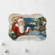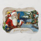 Nostalgic Victorian era greeting card illustration featuring winter scene with traditional Santa, holly and Merry Christmas greeting. Complementary image on reverse with customisable text.