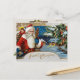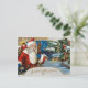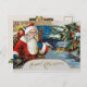 Nostalgic Victorian era greeting card illustration featuring winter scene with traditional Santa, holly and Merry Christmas greeting.