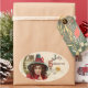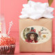 Cute, vintage picture of a little girl witch with an owl picture, is featured on this Halloween sticker. With message, "Jolly Halloween", makes this perfect for sending that special Halloween card, or use for decorating or scrapbooks too!