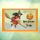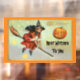 Cute, vintage picture of a witch flying on her broom with a smiling pumpkin in the sky, is featured on this window cling for Halloween. With message, "Halloween, Best Witches To You", this will enhance your windows for the Halloween holiday! Sticks to glass surfaces electro-statically so it can be removed and used over again. A great and easy way to decorate your home for Halloween.