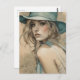A beautiful vintage looking sketch of a blonde woman in blue AI generated art