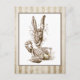 Original Alice in Wonderland vintage White Rabbit illustration. Antique distressed brown and white striped background