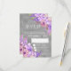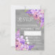 Wedding RSVP cards with grey wood pattern and rustic vintage lilac purple watercolor wildflowers.