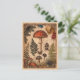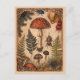 Vintage woodland postcard featuring a Victorian-style natural history illustration: a grand red spotted toadstool surrounded by smaller mushrooms, fern fronds, berries, seed pods, and beetles on an antique parchment ground with ornate corner flourishes and a warm ochre border. The back includes the short sentiment “For fellow seekers of tiny marvels—may curiosity lead you someplace lovely.” (fully editable) or can be left blank. Perfect for fall correspondence, pen-pals, cottagecore décor, or framing as a mini art print.