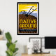 This beautiful 1939 poster advertises the W.P.A. Federal Theatre presentation of "Native Ground" by Virgil Geddes at Maxine Elliotts Theatre, 39th St. East of Broadway, New York City. The gorgeous illustration shows the silhouette of a plough in field, with a farmhouse in the distance. The colours are vibrant yellow and blue against rich brown fields. The original image is courtesy of The Library of Congress Prints and Photographs Division.