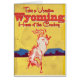 Vintage Wyoming Travel Poster - Take a plane to Wyoming, Home of the Cowboy vintage or classic vacation travel poster, featuring an all-american rodeo horse.