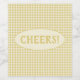 Trendy yellow vintage chequerboard patterned custom bottle labels are perfect for parties and giveaways. "Cheers!" text is customisable to meet your event needs.