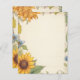 Aged sheet of paper with yellow sunflowers and green leaves. The same design is on the back of the paper. This beautiful paper works well as a scrapbook background and can be added to junk journals, collages, art journals and other paper crafts.