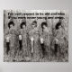 A vintage photograph of a group of cabaret dancers kicking their heels up and showing some scandalous leg through a cascading curtain of glittery streamers. The message on the poster is: "You can't expect to be old and wise if you were never young and crazy."