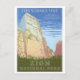This postcard is a reproduction of a vintage travel poster advertising Zion National Park.