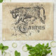 These items are printed with a vintage image of the zodiac sign Taurus with a worn and grungy texture.