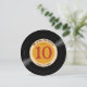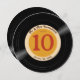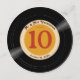 A retro 1970s vinyl record style round paper Table Number for your wedding with shades of cream, brown, and orange. This fun custom design features a vinyl record image. The label displays your table number. The label border features your names and wedding date in a retro script. Very vinyl and very 70s groovy.