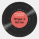 A retro red colour retro vinyl record style round sticker personalised with your monogram and names. This sticker adds a nice additional detail as an envelope seal or it can be used as a personalised decorative touch on favour packaging or other wedding stationery or reception components.